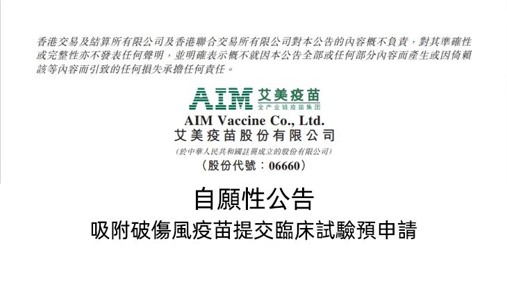 本公司董事会欣然宣布,,本集团吸附破伤风疫苗已于近日提交了临床 试验预申请。。