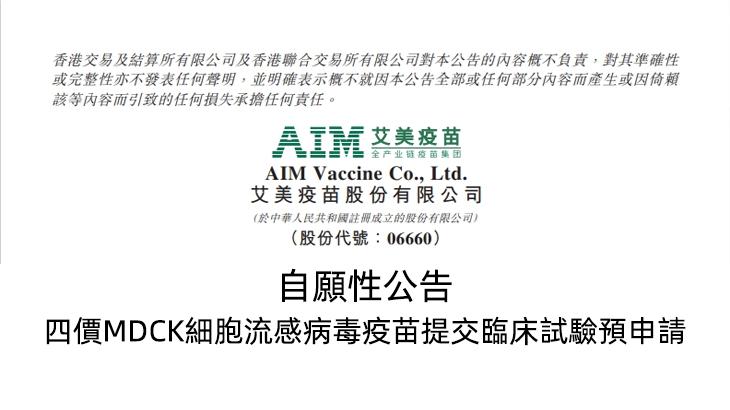 公告 | 四价MDCK细胞流感病毒疫苗提交临床试验预申请